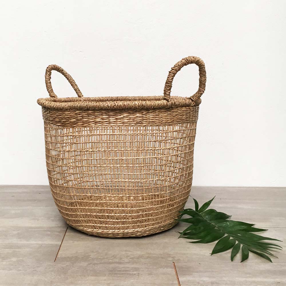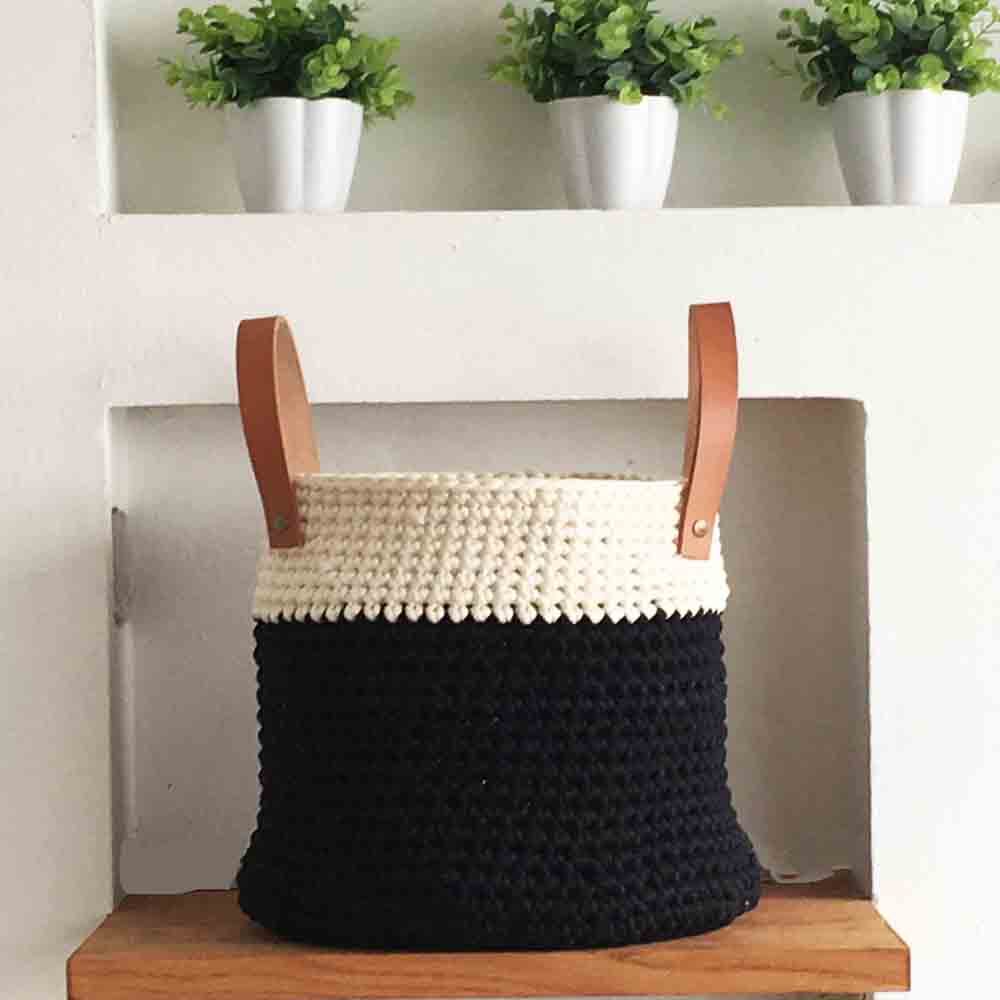 Cesto TEJIDO NORDICO con Cuero B&W Grande 30 cm