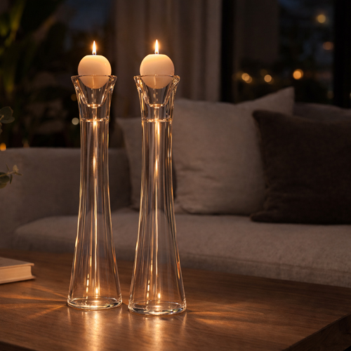 Candelabro de Cristal c/base de Madera Alto