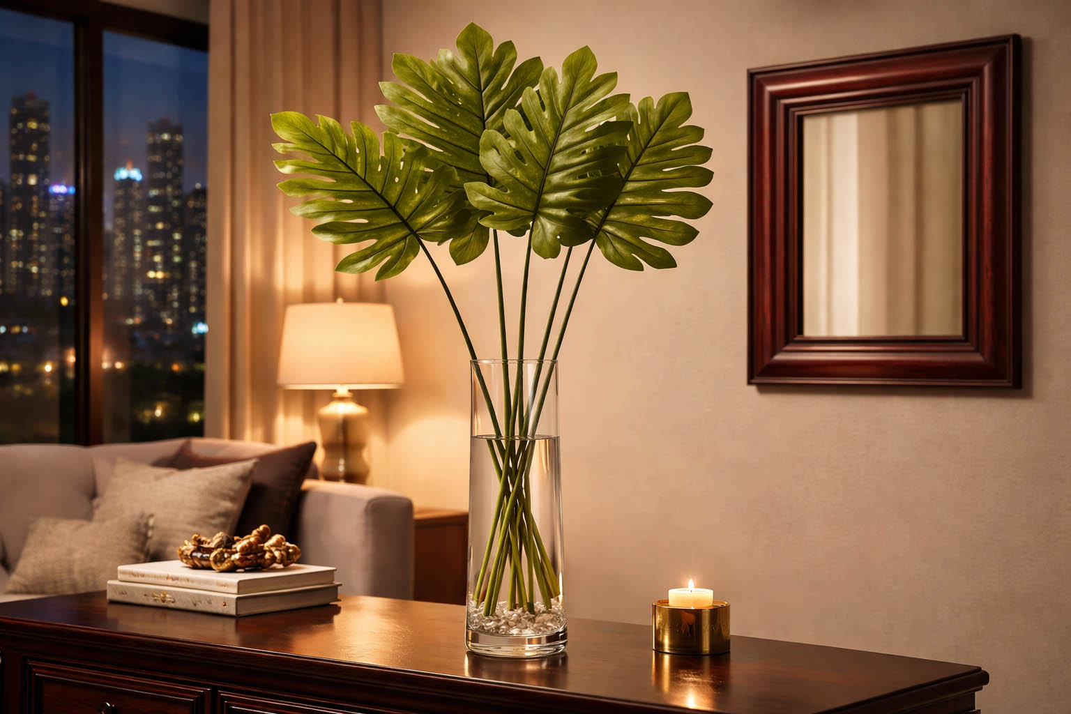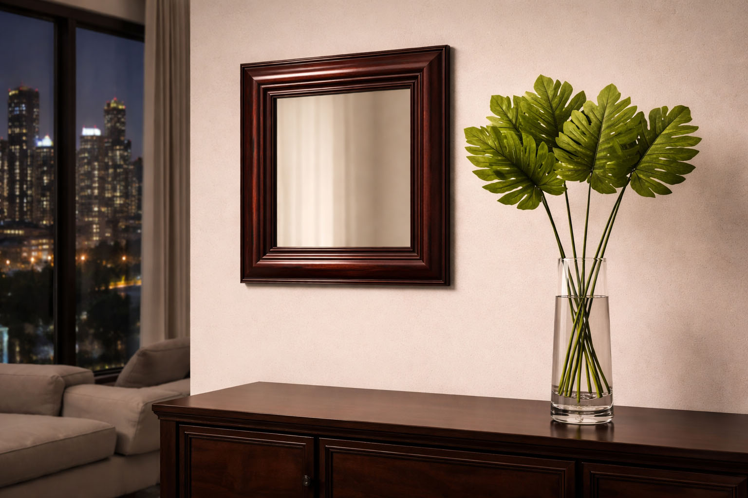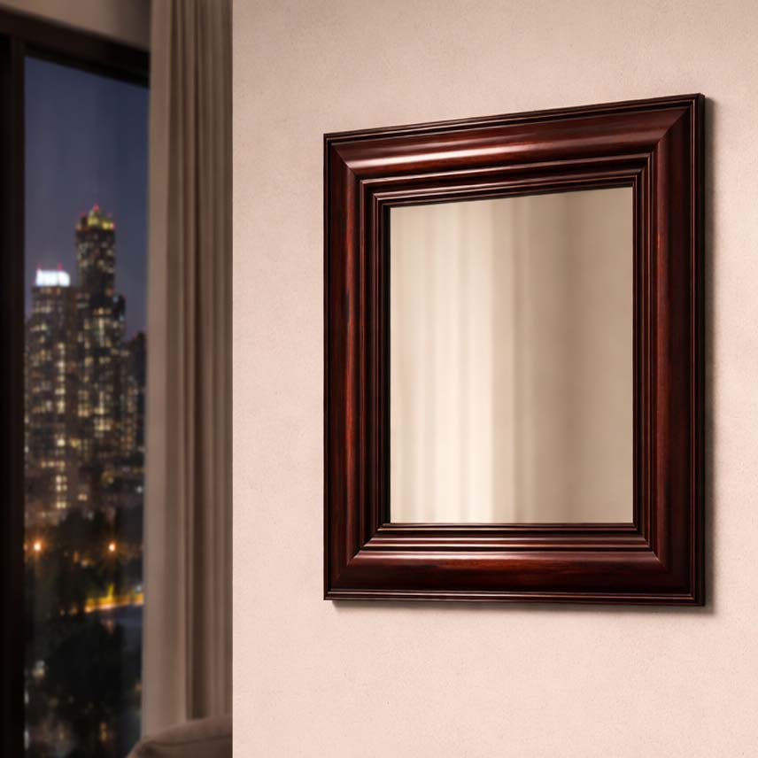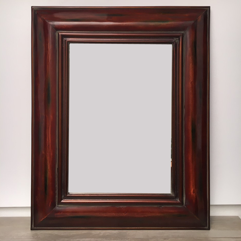 Espejo marco madera patina Caoba y vidrio biselado.